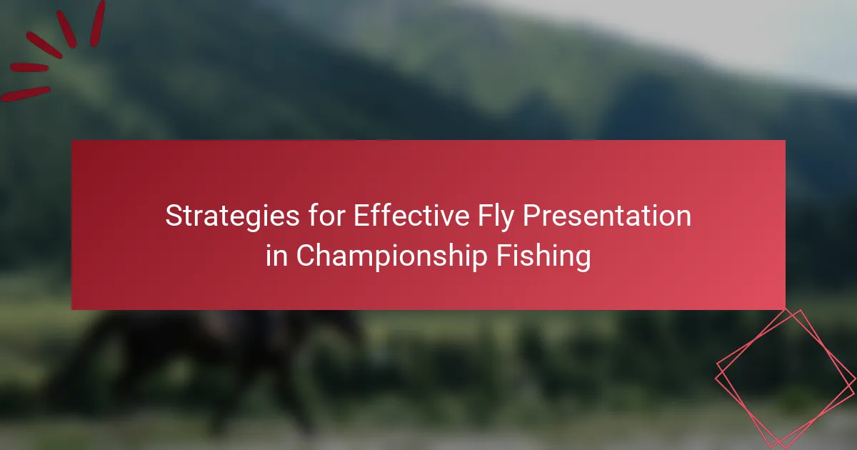 Key strategies for effective fly presentation in championship fishing include matching the hatch, understanding water conditions, and mastering casting techniques. Matching the hatch involves selecting flies that resemble the natural insects present at the fishing location. This strategy increases the likelihood of attracting fish. Understanding water conditions, such as temperature and flow, helps anglers determine the best times and locations for fishing. Mastering casting techniques ensures accurate and delicate presentations, minimizing disturbances on the water’s surface. Effective anglers often observe fish behavior to adapt their strategies. These practices are essential for success in competitive fishing environments.